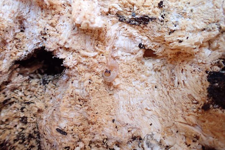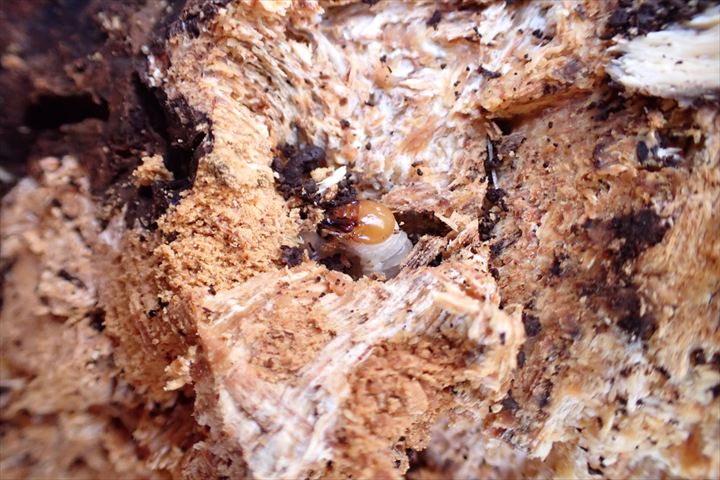 1発入れると かぶとの食痕に混じって太めの食痕が見えた