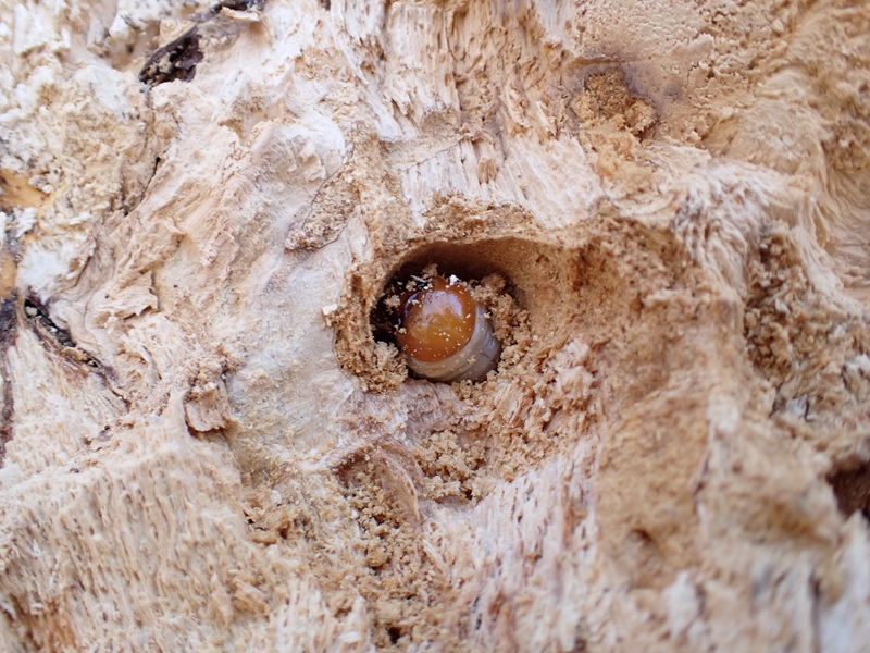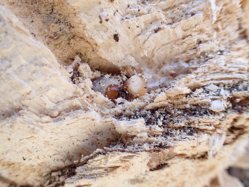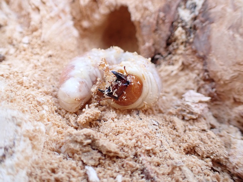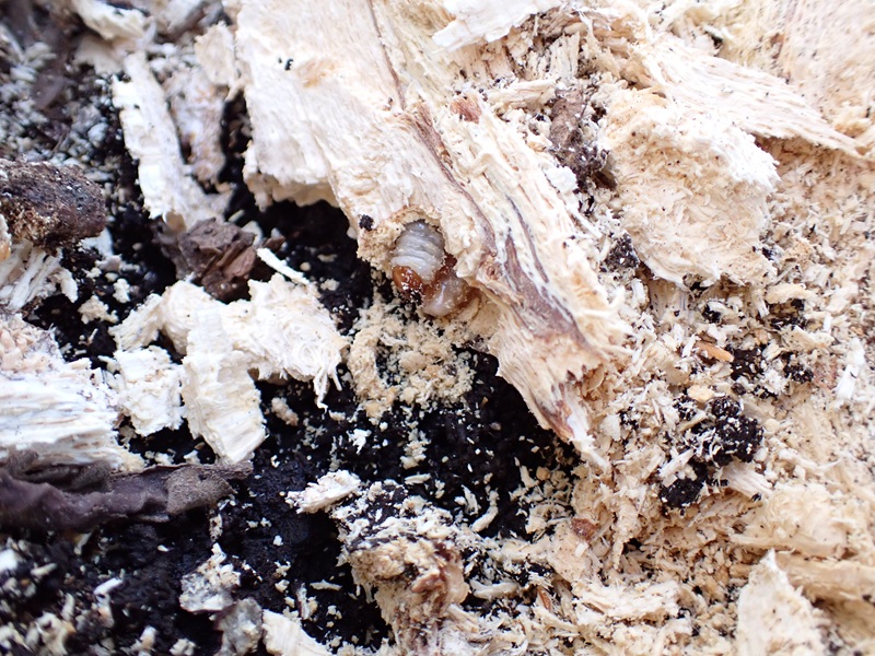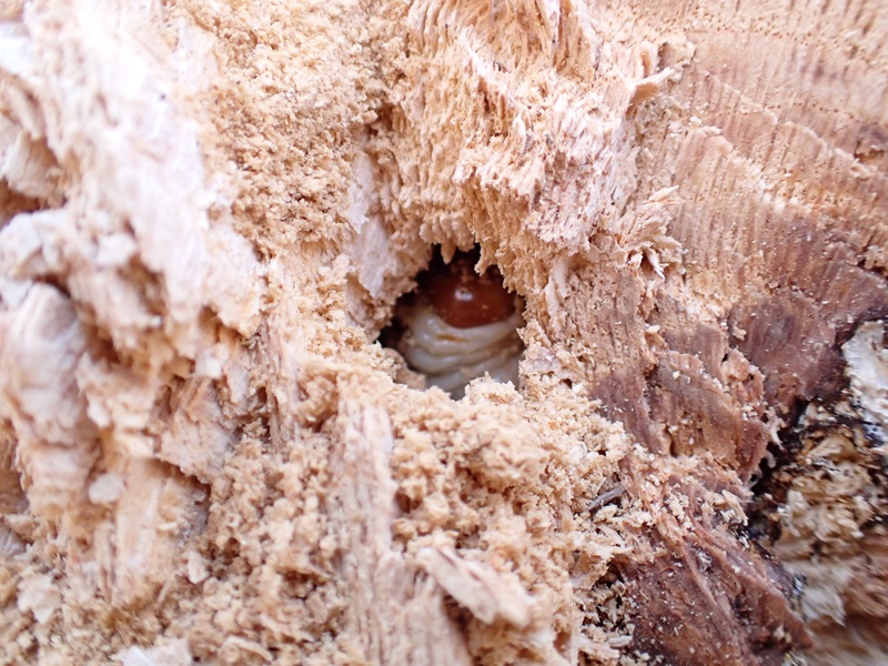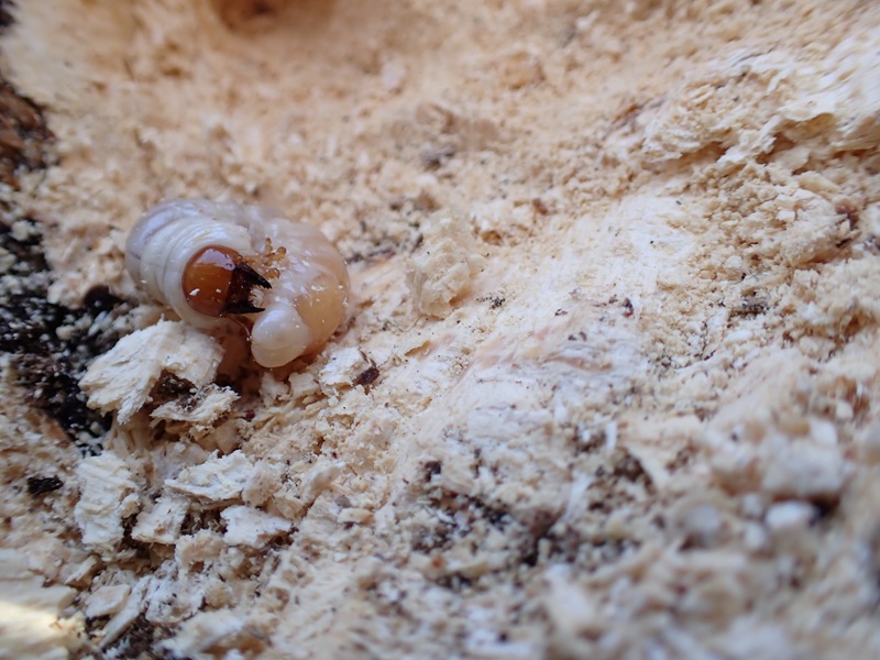 交代させて貰い 少し削いでいくと オスの幼虫が現れました